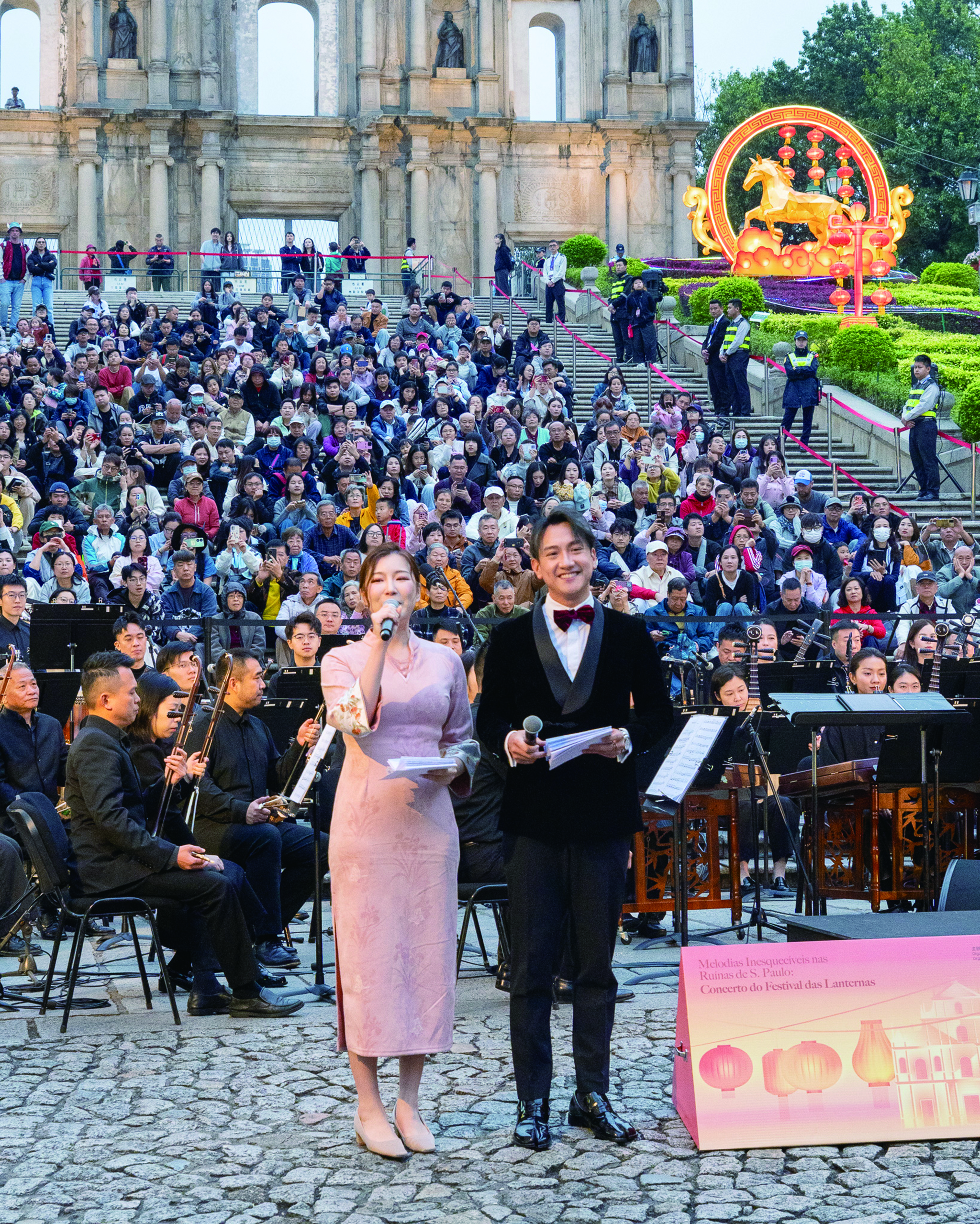 元宵節音樂會由澳門中樂團駐團指揮廖元鈺執棒,演繹多首應節樂曲,包括充滿新春熱鬧氣氛的《歡慶序曲》《上春山》《駿馬奔馳》,配合元宵節團圓氣氛的《正月-元宵》,以及影視主題曲《天命最高》等,在世遺美景下與樂迷歡度佳節。