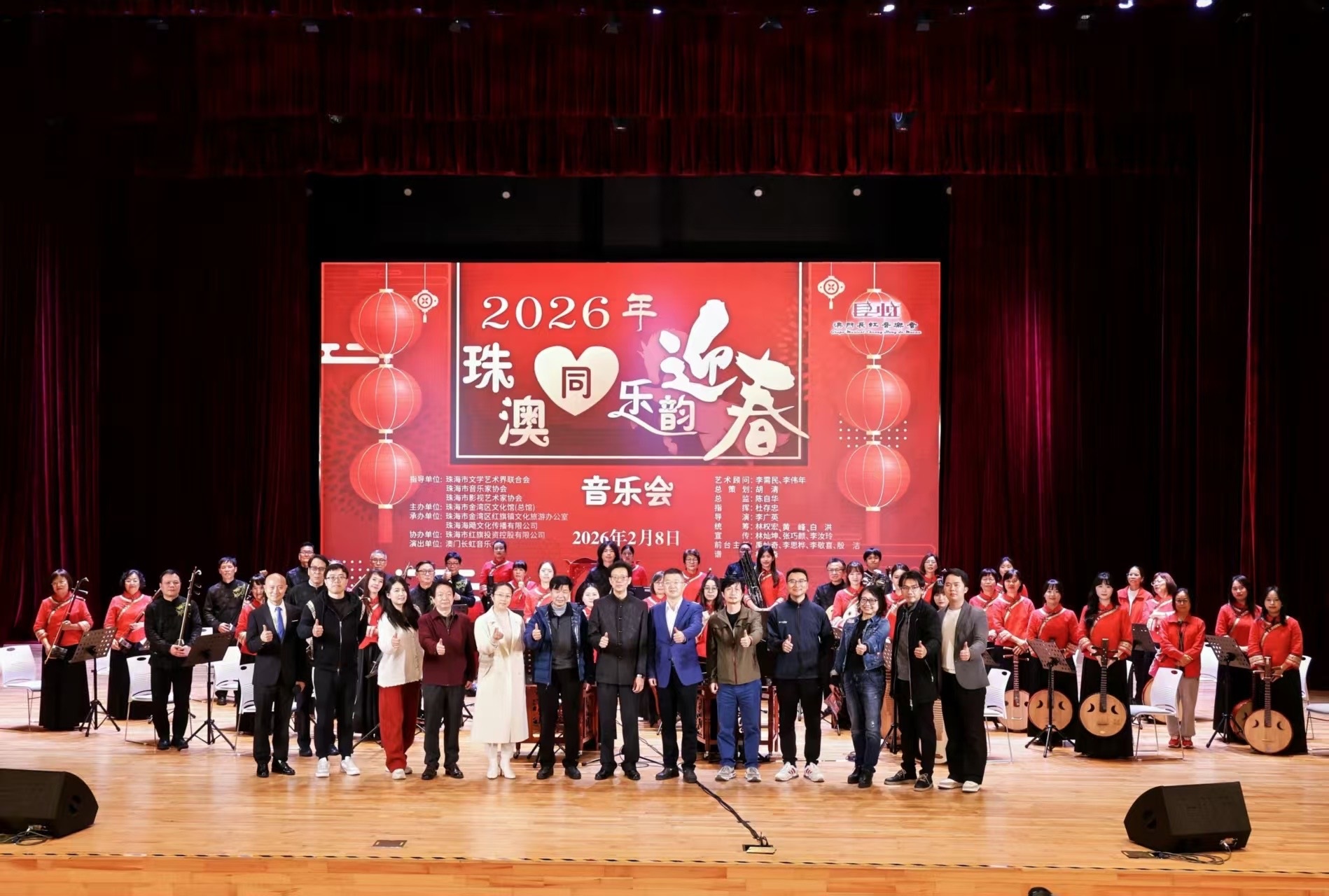由珠海市文學藝術界聯合會、珠海市音樂家協會、珠海市影視藝術家協會共同指導,珠海市金灣區文化館(總館)主辦,珠海市金灣區紅旗鎮文旅辦、珠海海颺文化傳播有限公司聯合承辦,珠海市紅旗投資控股有限公司協辦,澳門長虹民族樂團擔綱演出的二零二六年「珠澳同心 · 樂韻迎春」專場音樂會,於二月八日(星期日)晚十九時假珠海市金灣區紅旗文體中心精彩上演。本場音樂會以經典民樂為載體,以文化交融為紐帶,進一步推動珠澳兩地的藝術互動與民心相通,在新春佳節來臨之際,為金灣市民與灣區觀眾獻上一場格調高雅、內涵豐富的民族管弦樂視聽盛宴。