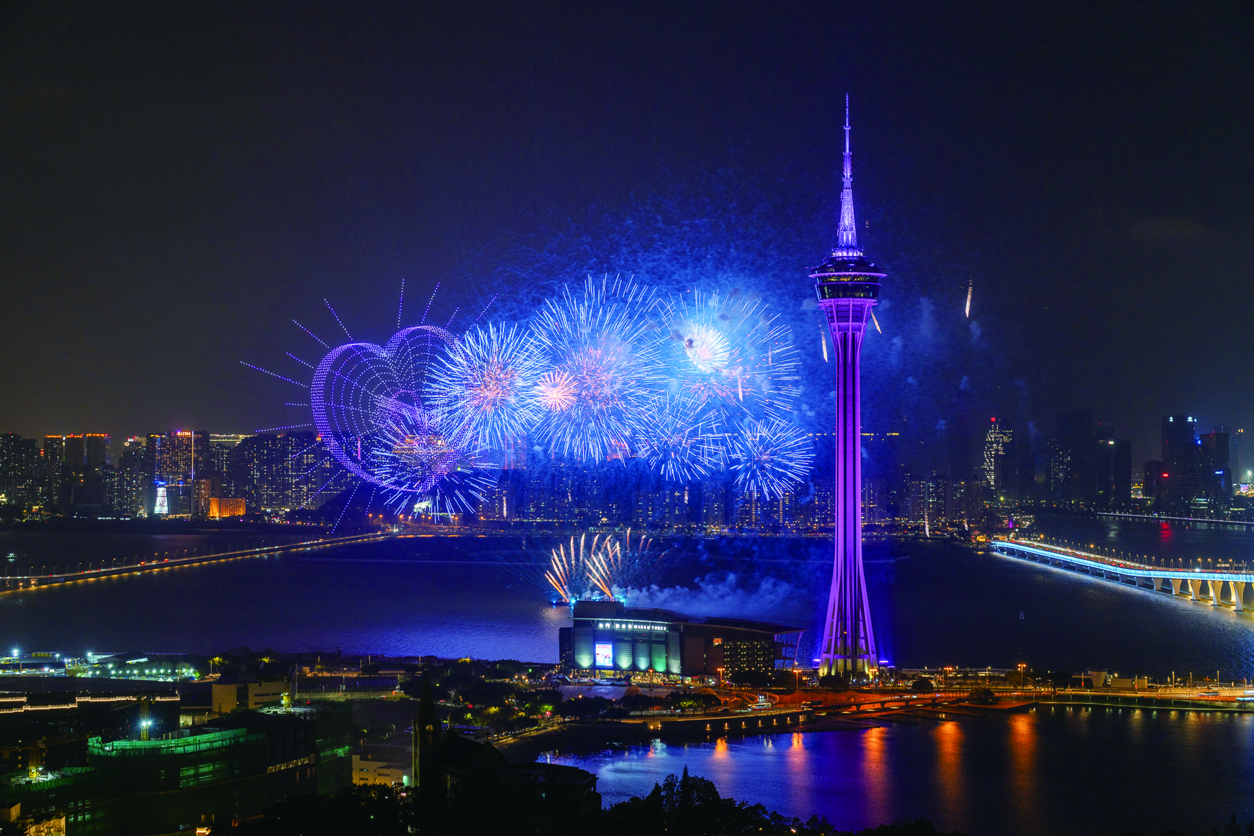 ☆旅遊塔與煙花和無人機的完美配搭
